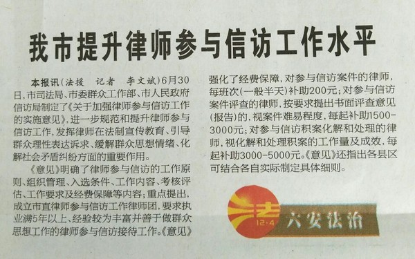 7月17日《皖西日报》:我市提升律师参与信访工作水平