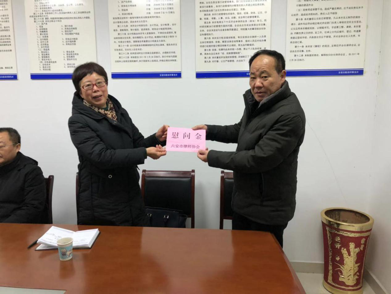 胡林明一行首先到安徽知勤律师所、徽安律师所,对律所的办公环境、规范化建设、律所工作人员的精神面貌等方面进行了全面地考察,听取律所主任的汇报,并慰问困难党员律师。